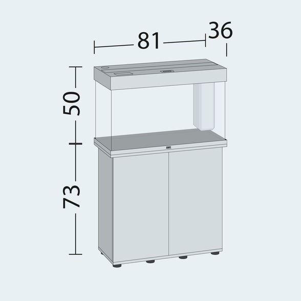 Rozměr akvária S délkou 81 cm a šířkou 36 cm je Rio 125 nejmenším akváriem ze řady Rio. |  |