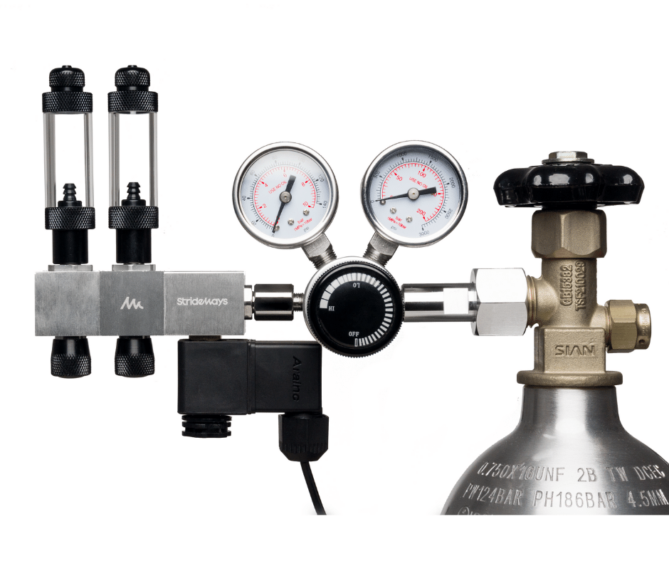 Proč zvolit regulátor Strideways? - Regulátor má vše, co pro záčátek potřebujete, manometr, solenoid, zpětný ventil a počítadlo bublin.