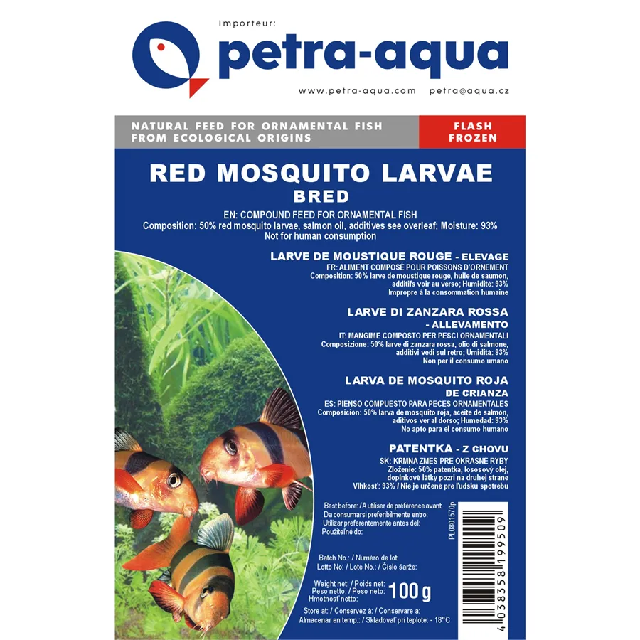 Vysoká nutriční hodnota - Mražené krmivo si zachovává většinu živin, vitamínů a minerálů. Přirozené bílkoviny a tuky důležité pro růst, imunitu a barvu ryb.