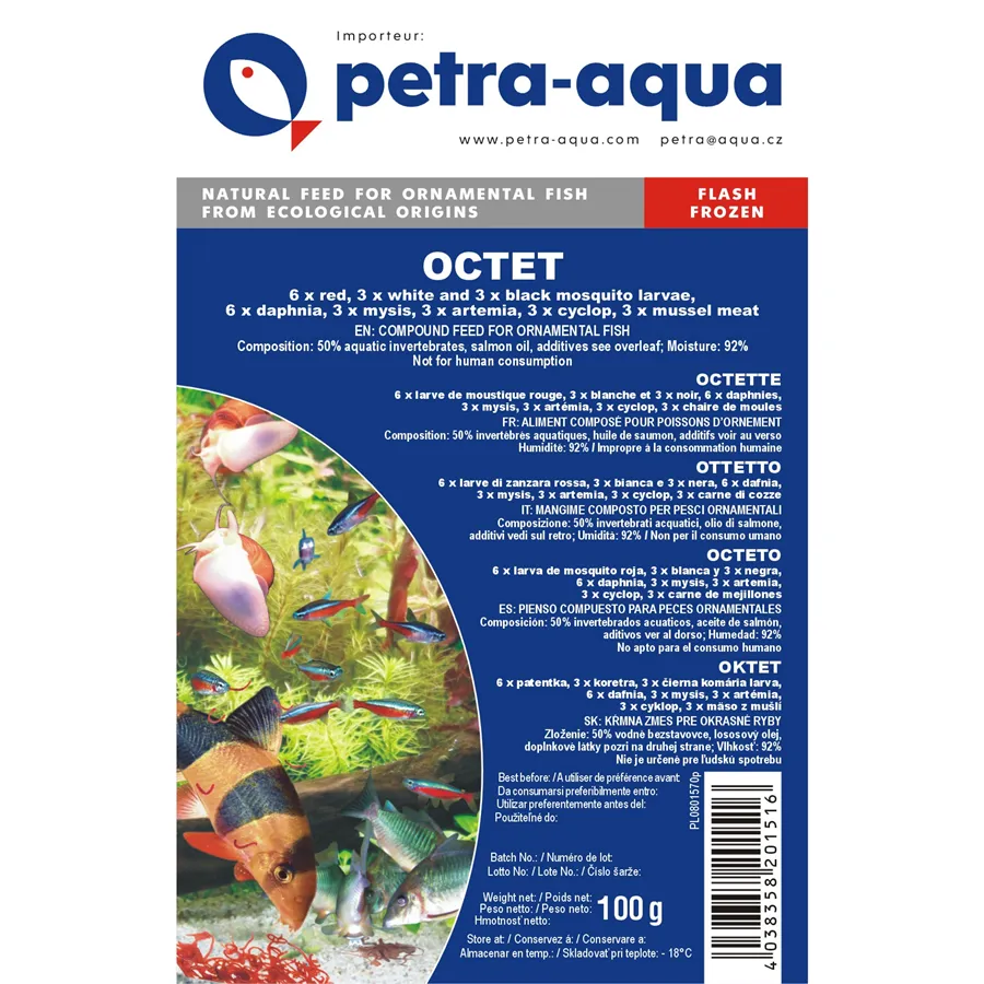 Vysoká nutriční hodnota - Mražené krmivo si zachovává většinu živin, vitamínů a minerálů. Přirozené bílkoviny a tuky důležité pro růst, imunitu a barvu ryb.