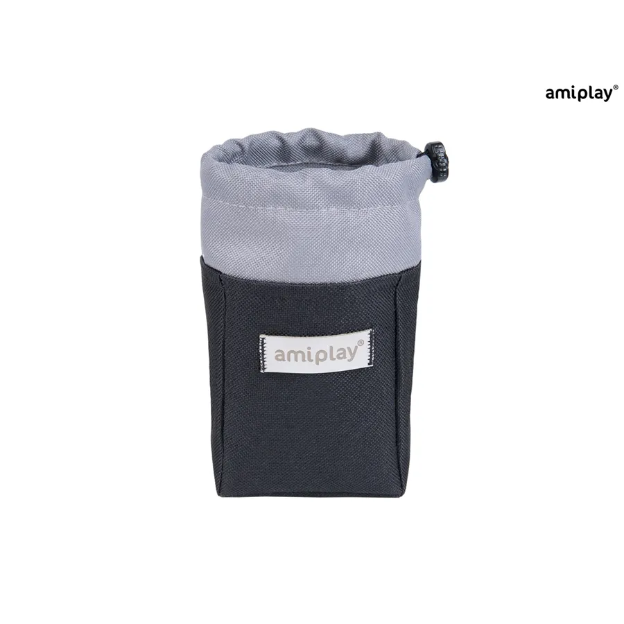 Taška má poutko s karabinou, takže ji můžete připevnit přímo ke kalhotám nebo provléknout opaskem. Chcete-li zabránit vysypání pamlsků nebo ochránit obsah před deštěm, jednoduše sáček uzavřete stahovací šňůrkou.