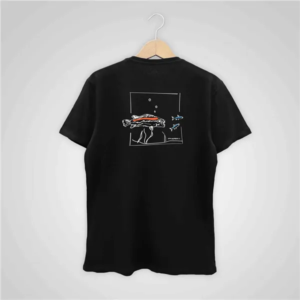 Motiv trička a čepic snapback dostal název ´´žeru ryby´´, vtipný design by mohl potěšit každého milovníka ryb a akvaristiky všeobecně. Dále je tričko i čepice navržená, tak aby se dalo běžně nosit a aby na něj nebyli zbytečné reklamy. Cílem je snaha vytvořit stylovou kolekci oblečení a doplňků, kterou navíc podpoříte tvorbu videí na youtube a růst vaší oblíbené akvaristiky.