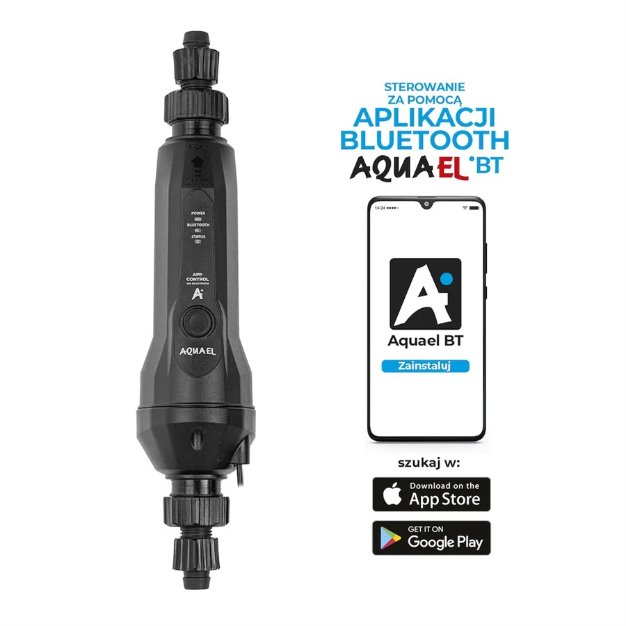Bluetooth ovládání přes mobilní aplikaci Proměňte svůj telefon nebo tablet v přehledné ovládací centrum akvária. Flow Heater BT se připojuje přes Bluetooth a ovládá se pomocí aplikace AQUAEL BT, dostupné zdarma pro Android i iOS. Nastavení je rychlé, intuitivní a máte vše pod kontrolou odkudkoliv v dosahu zařízení. Stav topítka je navíc jasně signalizován LED diodami přímo na těle zařízení: -