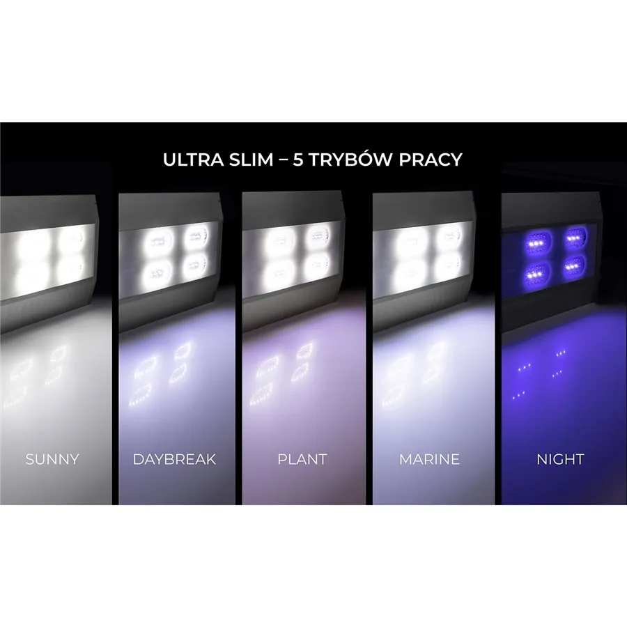 UltraSlim je akvaristická led lampa vybavená 5 světelnými režimy, díky kterým ji lze použít ve všech typech otevřených nádrží.