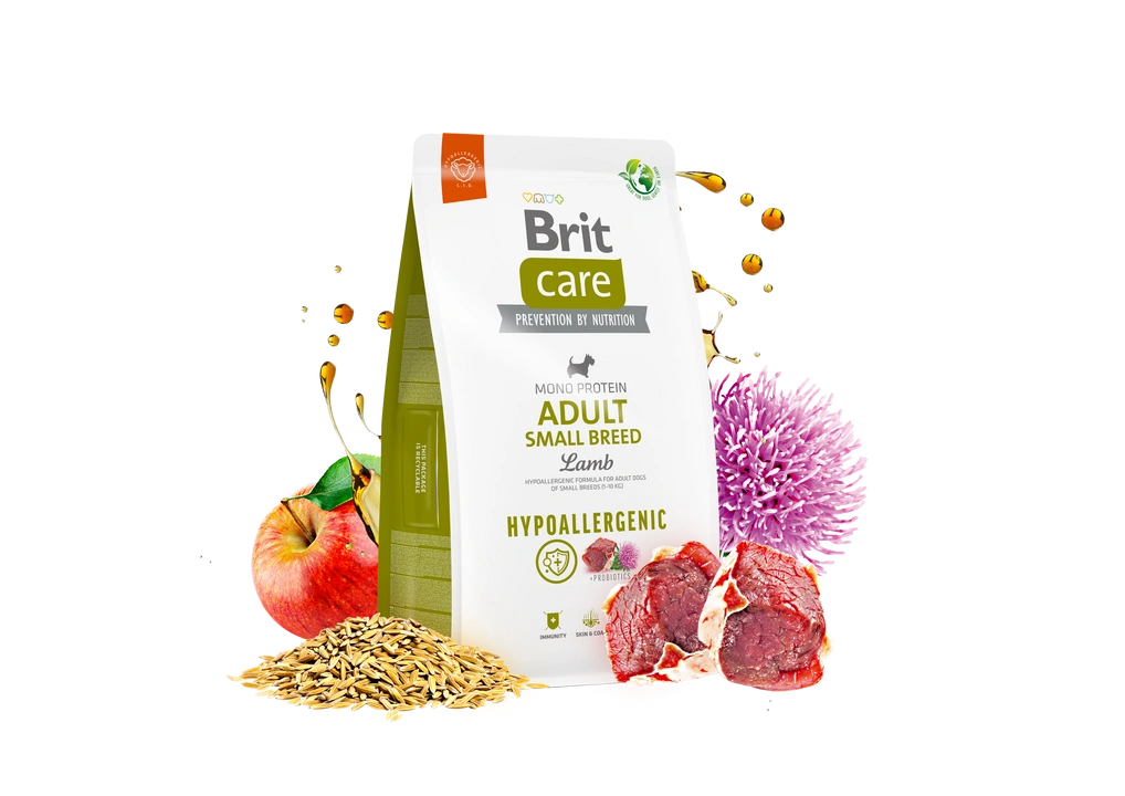 Brit Care Hypoalergenní receptura Jehněčí a rýže pro psy malých plemen (1 – 10 kg).