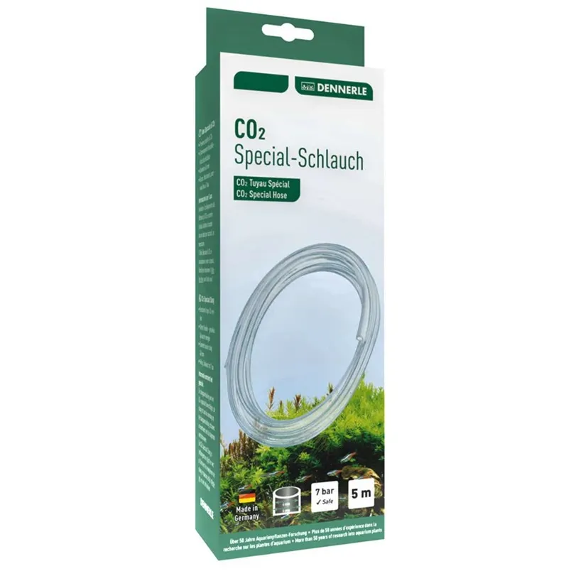 CO2 snadno uniká skrz mnoho materiálů používaných na výrobu hadic. proto není možné použít běžnou vzduchovací hadičku na dávkování CO2. Speciální měká flexibilní hadička na CO2 od firmy DENNERLE je vyrobena ze speciální umělé hmoty, která přivede CO2 do akvária bez ztrát.