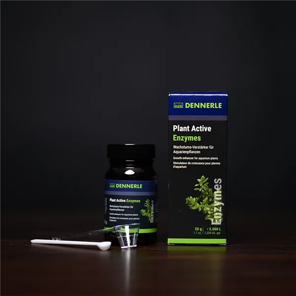 Dalo by se předpokládat, že rostlina poroste na maximum, když bude mít dostatečné množství světla, CO2 a živin. Ale není tomu tak. Praxe ukazuje, že existují i další faktory, které mají příznivý vliv na růst. Dennerle brzy provedl rozsáhlé studie o těchto sekundárních růstových faktorech. Odtud pocházejí rostlinné aktivní enzymy. Rostlinné aktivní enzymyfunguje vícekrát. Přírodní rostlinné enzymy stimulující růst stimulují buněčné dělení. Enzymy jsou biokatalyzátory a mají zásadní význam pro metabolismus rostlin. Například přeměňují rezervní látky na rozpustné látky, které pomáhají rostlině růst. To podporuje tvorbu nových listů a růst výhonků. Plant Active Enzymes je proto zvláště vhodný pro aquascaper, zejména po prořezávání pro urychlení nového růstu. Zároveň vybrané, přírodní aktivní látky podporují stavební a energetický metabolismus. Mohou být absorbovány a metabolizovány rostlinou přímo prostřednictvím listů. To posiluje rostliny a může zvýšit jejich obranyschopnost, např. proti růstu řas na listech. Plant Active Enzymes má také pozitivní vliv na redoxní rovnováhu v akváriu. Oxidací dochází k oxidaci řady živin, a tím se stávají pro rostliny neúčinnými (např. železo a mangan). Redukce převádí tyto živiny zpět do formy, kterou mohou rostliny absorbovat. Rostlinné aktivní enzymy podporují tyto redukční reakce. Rostlinné živiny, které se staly neúčinnými, jsou tak v akváriu remobilizovány a opět zpřístupněny rostlinám. Růstové prostředí je optimalizováno. Zvláště pozitivní: Rostlinné aktivní enzymy udržitelnou podporou růstu rostlin také vytvářejí nepříznivé podmínky pro růst řas. Stávající řasy jsou zpomaleny, růst nových řas je výrazně omezen.