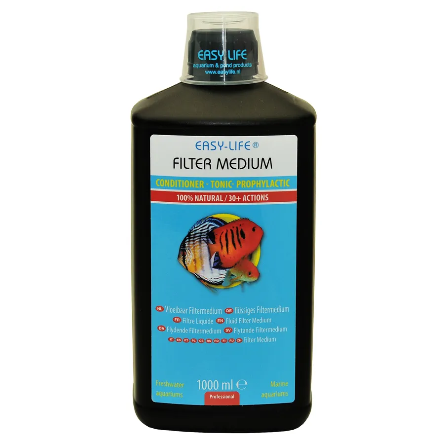 Easy-Life Filter Medium je jedinečný 100% přírodní přípravek, který čistí vodu, podporuje růst rostlin, zvyšuje vitalitu ryb a eliminuje stres i škodlivé látky. Funguje ve sladkovodních i mořských akváriích, rybníčcích a je ideální při údržbě, zakládání akvária, transportu ryb i léčbě. Bez chemie, bez rizika, s maximální účinností.