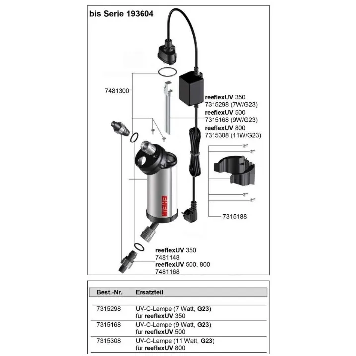 POZOR !!! pouze pro UV lampu serie 193604 !!!