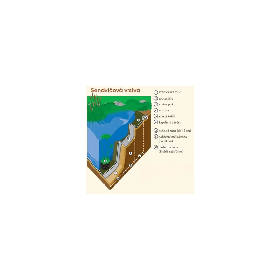 Vykopejte postupně bahnitou zónu (0–15 cm), pobřežní mělkou zónu (15–50 cm) a hlubinnou zónu (od 50 cm).