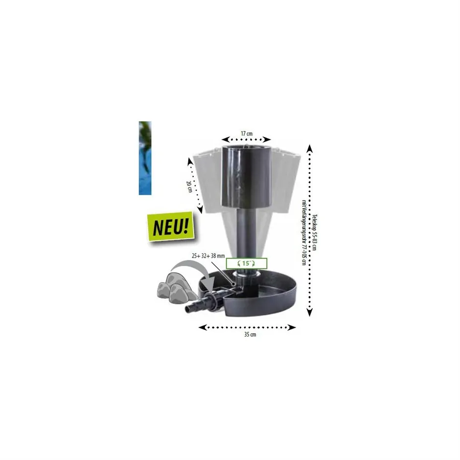 Stojící skimmer do jezírka HEISSNER F551-00, ochrání Vaše jezírko od napadaných nečistot na hladinu, zabrání klesnutí nečistot na dno jezírka a následnému rozkladu, zkrátí výrazně čas věnovaný údržbě jezírka. Má pozitivní vliv na biologické čištění jezírka, neboť dochází k odsávání teplé vody, teplota v jezírku se stabilizuje a proto se růst řas snižuje.