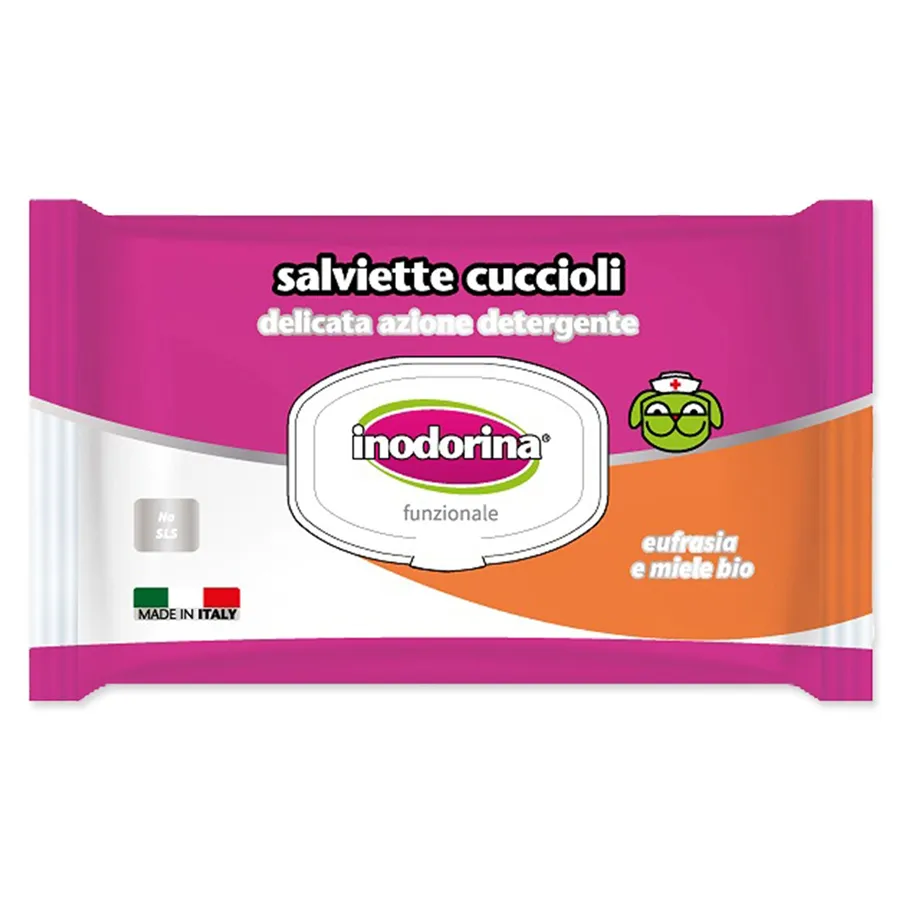 Specifické funkční ubrousky pro čištění a denní hydrataci srsti štěňatObsahuje med, známý svými změkčujícími vlastnostmi a eufrazii, známou svými uklidňujícími a osvěžujícími vlastnostmi.