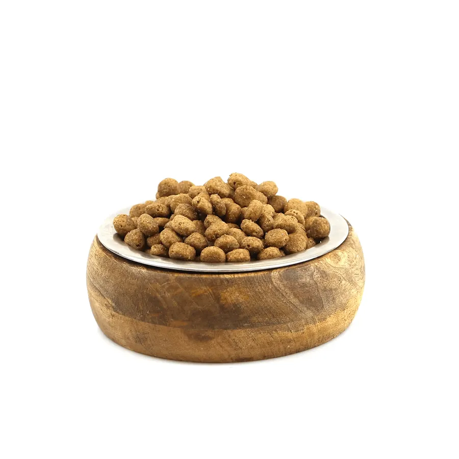 Sušená kachna (23 %), Čerstvá kachna (15 %), Rýže, Hnědá rýže, Hrách, Loupaný hrách, Hovězí tuk (7,5 %), Lněné semínko (2 %), Sušená čekanka (přírodní zdroj FOS a inulinu – 0,4 %), Řepné řízky, Minerály, Lososový olej (0,5 %), MOS (0,5 %), Yucca Schidigera (0,04 %), Glukosamin hydrochlorid (50mg/kg), Chondroitin sulfát (50mg/kg).