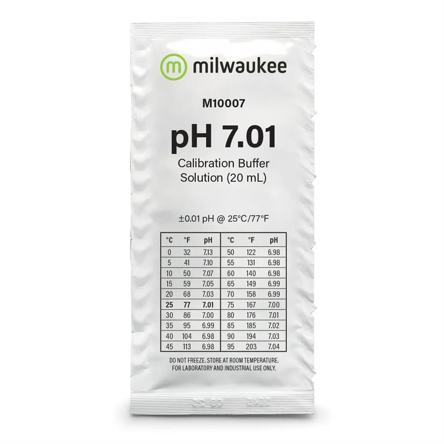 Milwaukee M10007B je laboratorně přesný kalibrační roztok s hodnotou pH 7.01, ideální pro pravidelnou i příležitostnou kalibraci pH metrů a sond. Roztok je připraven v sáčku o 20ml, který zajišťuje čerstvost a spolehlivost při každém použití – bez rizika kontaminace nebo ztráty přesnosti jako u lahvových roztoků.