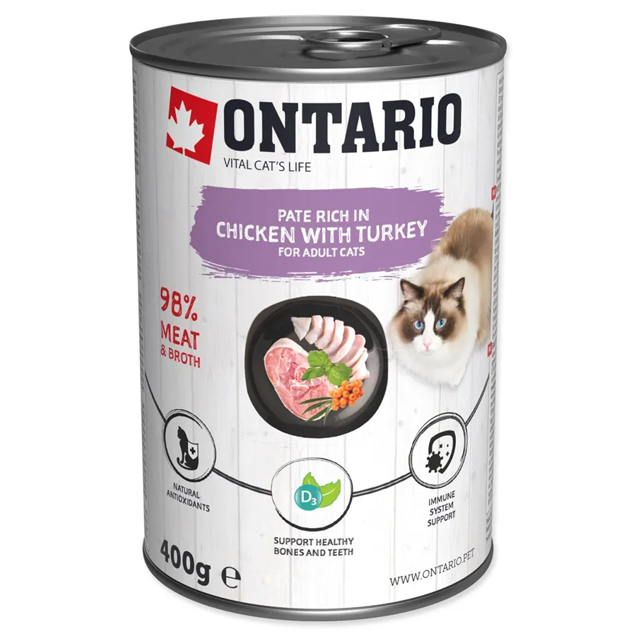 Paté bohaté na kuřecí maso s krůtím ochucené rakytníkemKompletní krmivo pro dospělé kočky od 1 roku věku. Mleté kuřecí s krůtím, s příchutí rakytníku, jako zdroj vitamínů a minerálů, které udržují koč...