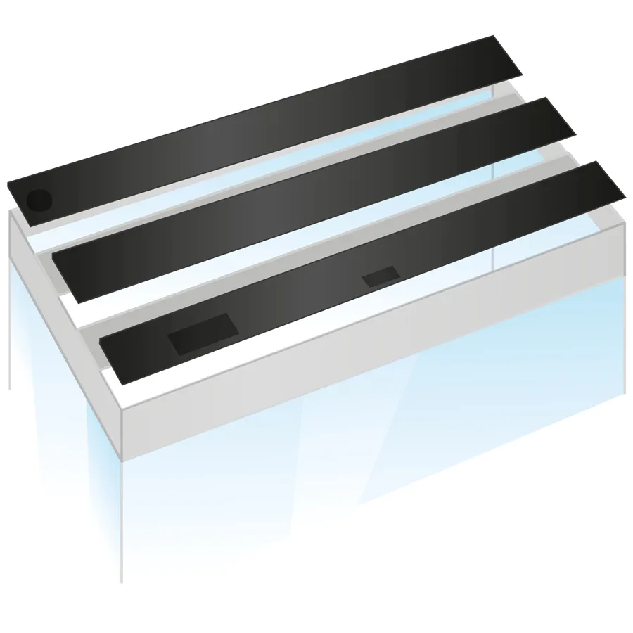 Vylepšené plastové poklopy určené pro akvárium Juwel Lido 200. Oproti původním poklopům, které byly vybaveny pouze jednou rampou, nabízí tato verze prostor pro dvě světelné rampy, což umožňuje osadit akvárium dalším osvětlením. Stejně jako u všech akvárií Juwel, i zde je integrován otvor pro automatické krmítko. Tyto poklopy slouží jako originální náhradní díl i modernizace stávajícího setu.