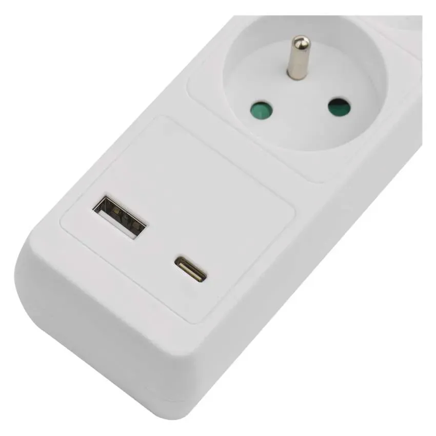 Prodlužovací zásuvka s 5 zásuvkami, centrálním vypínačem a integrovanými USB porty (A + C) na 3metrovém kabelu kombinuje klasické napájení s nabíjením moderních zařízení bez adaptéru. Ideální volba pro pracovní stůl, obývací pokoj i domácí kancelář, kde chcete mít připojené spotřebiče a zároveň dobíjet mobily nebo tablety.
